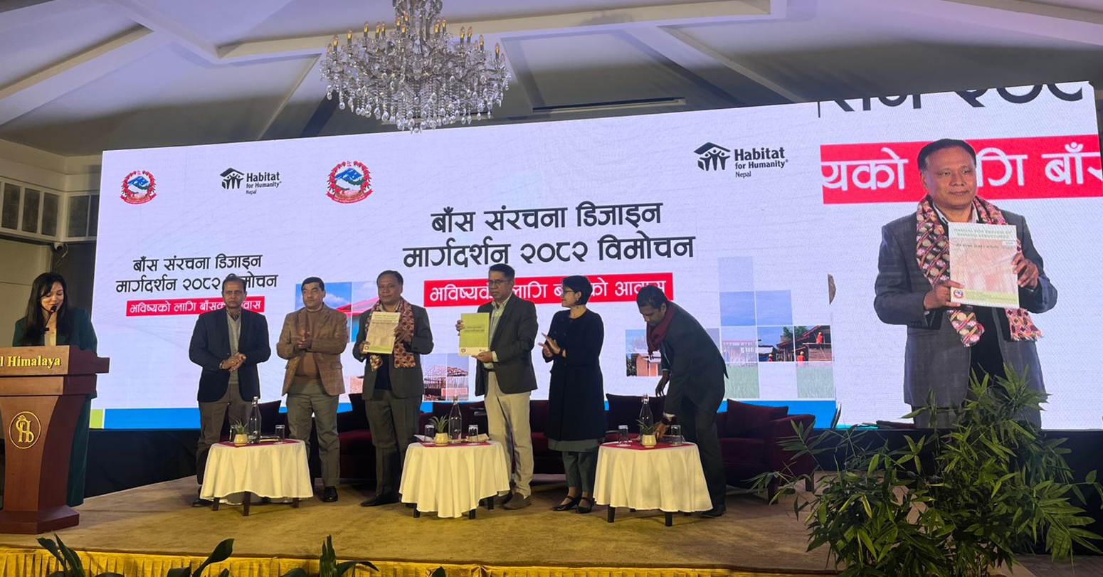 शुक्रवार,पुस ४,२०८२,काठमाडौँ । उर्जा, जलस्रोत तथा सिंचाइ, भौतिक पूर्वाधार तथा यातायात र शहरी विकासमन्त्री कुलमान घिसिङले बाँसवाट निर्माण हुने संरचनाको डिजाईन सम्बन्धि मार्गदर्शन, २०८२ विमोचन गरेका छन्। शहरी विकास मन्त्रालय र ह्याविटाट फर ह्युमानिटी नेपाल संस्थाको संयुक्त आयोजनामा भएको विमोचन कार्यक्रममा स्थानिय सरकारका जनप्रतिनिधी, इन्जिनियरिङ समुदायका विज्ञहरु समेतको उपस्थिति थियो ।