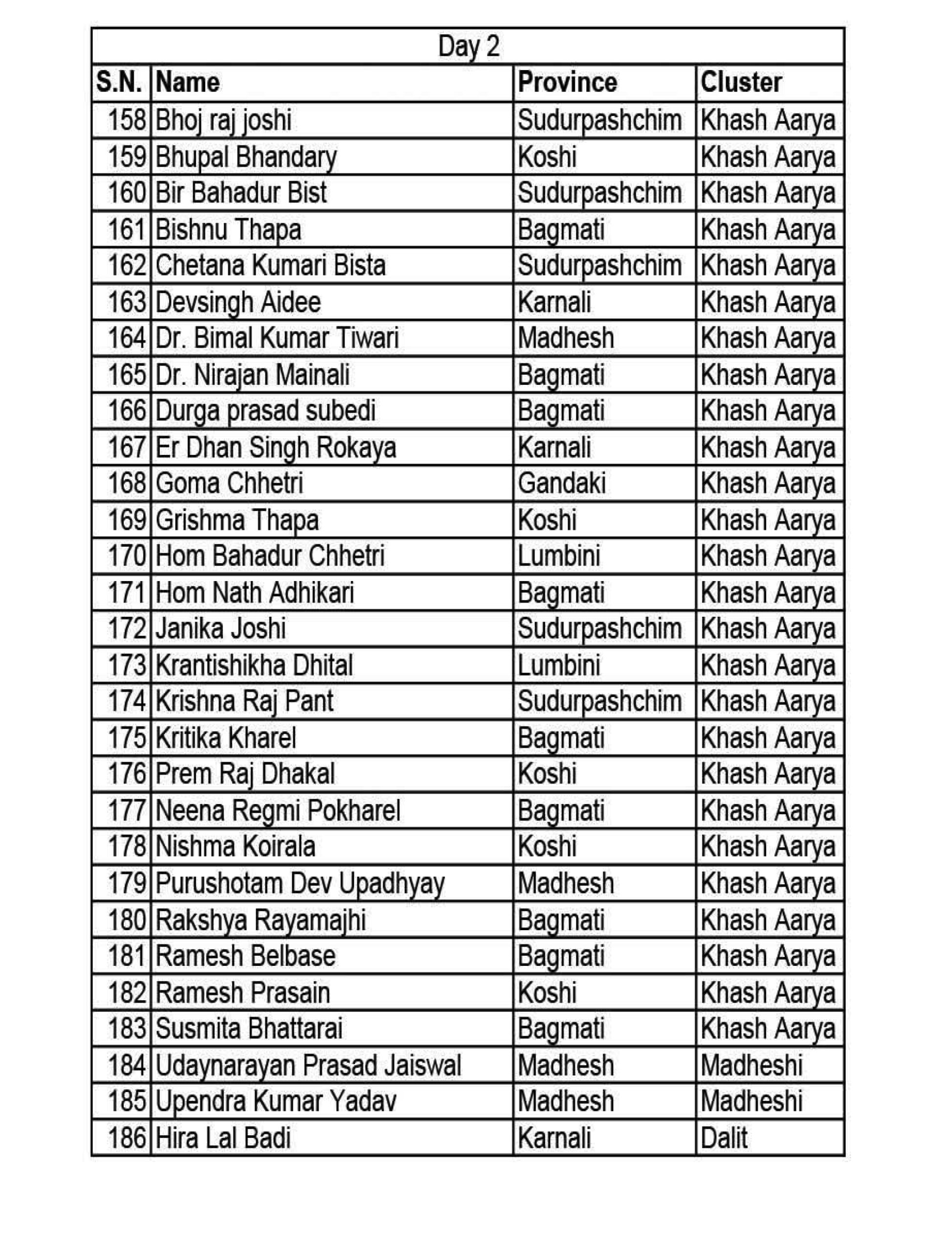 रास्वपाका अनुसार उम्मेदवारका लागि ४१४ जना आकांक्षीहरूले पार्टीमा आवेदन दिएका थिए । जसमध्ये २७ जनाको नाम सार्वजनिक सूचीमा समावेश गरिएको छैन ।